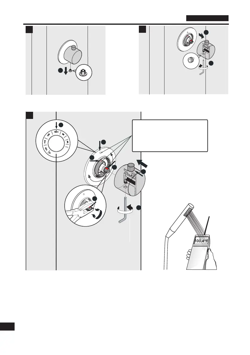 du mélangeur thermostatique, les trois points se trouvant sur la plaque graduée (1 – illustration