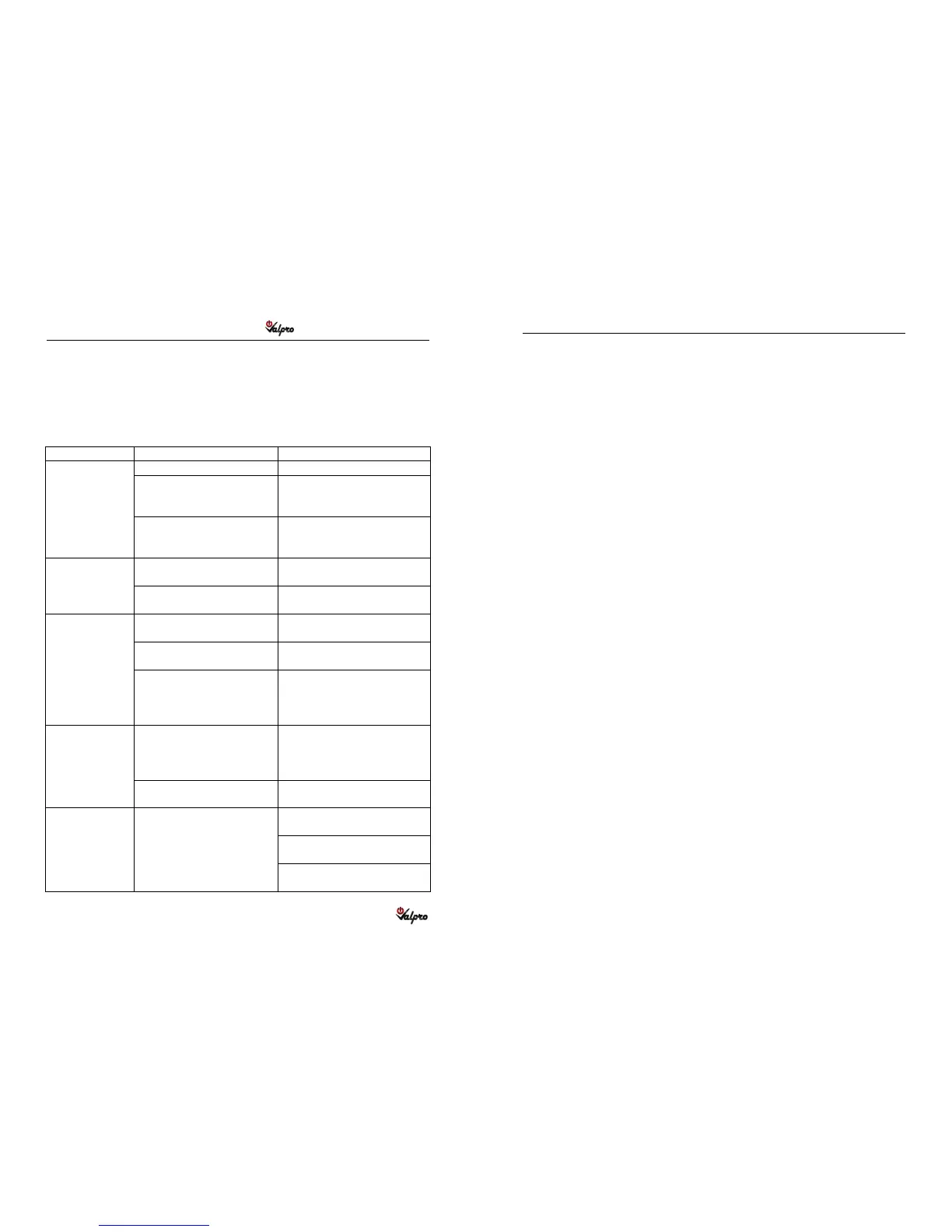 27 For warranty service, call 1-888-VALPRO8 / 1-813-502-030