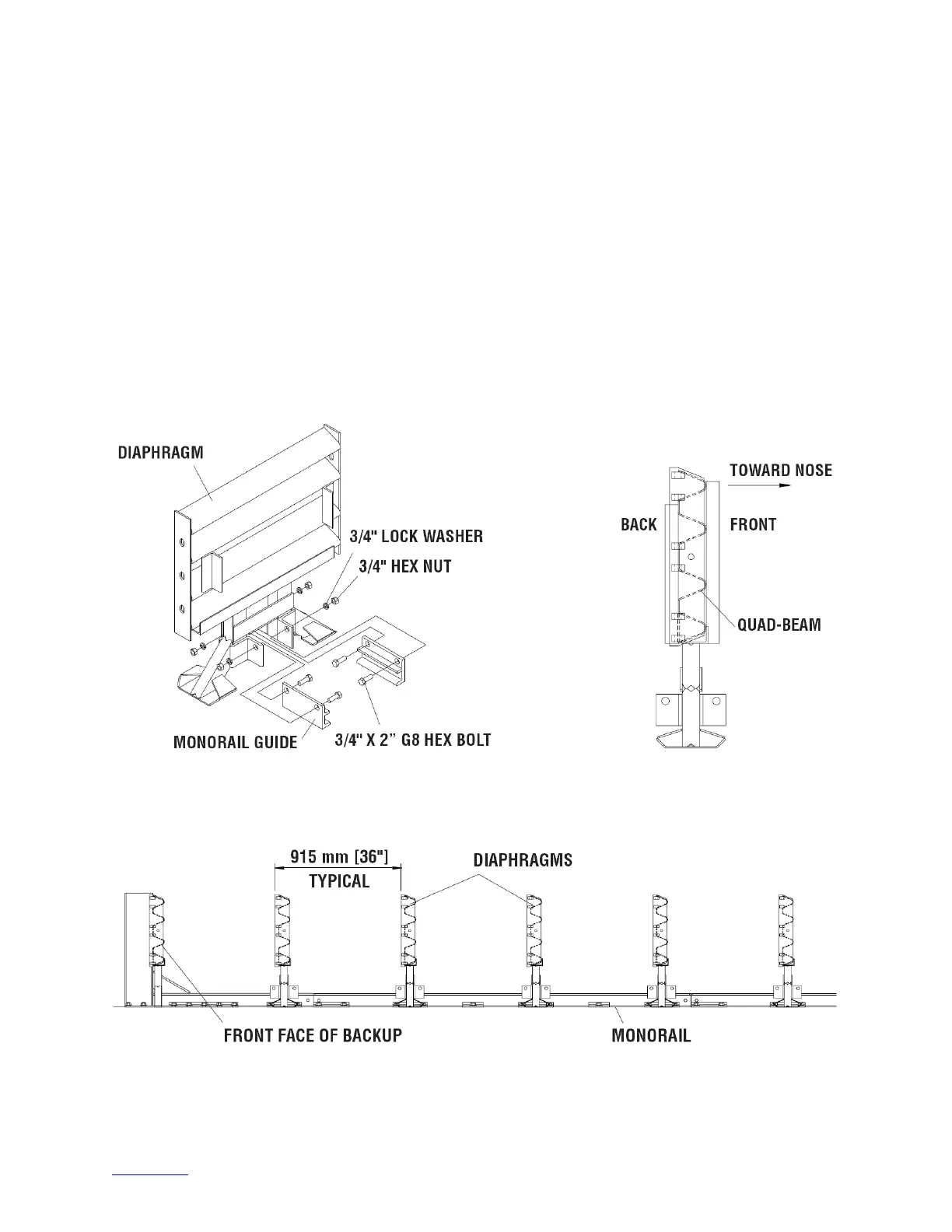 Insert 3/4" x 2” G8 hex bolt through Monorail guide and Diaphragm, oriented as shown in