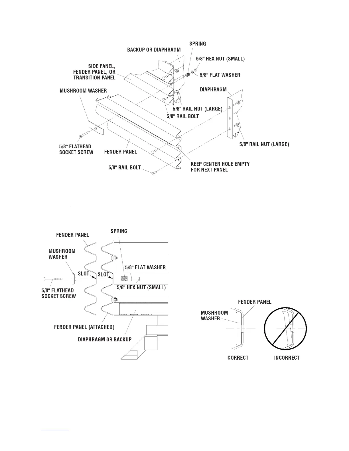 Standoff on Mushroom Washer must be seated completely through slot.