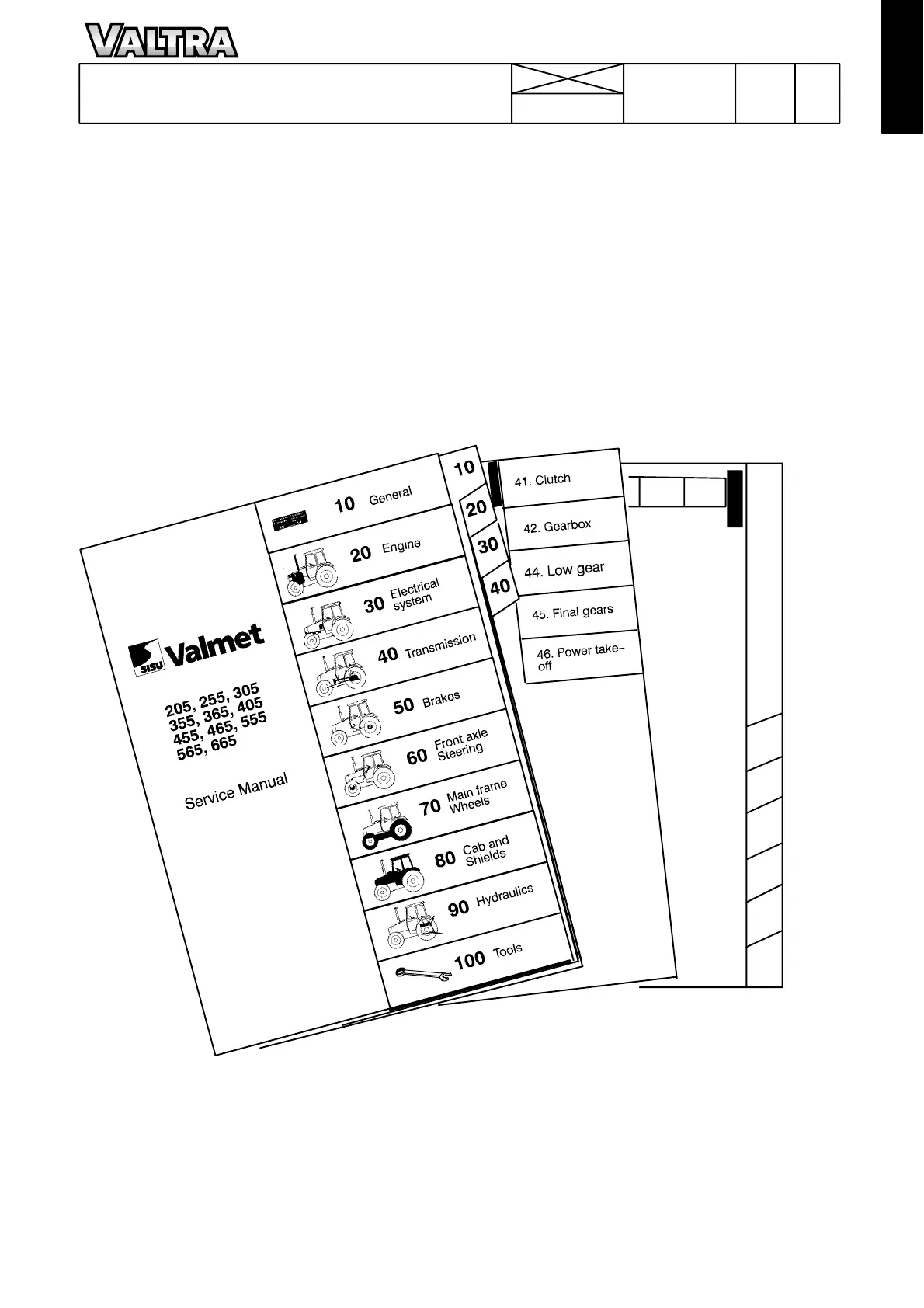 The manual is divided into groups (10---100) which are based on the make---up of the tractor. The groups are listed on the firstindex