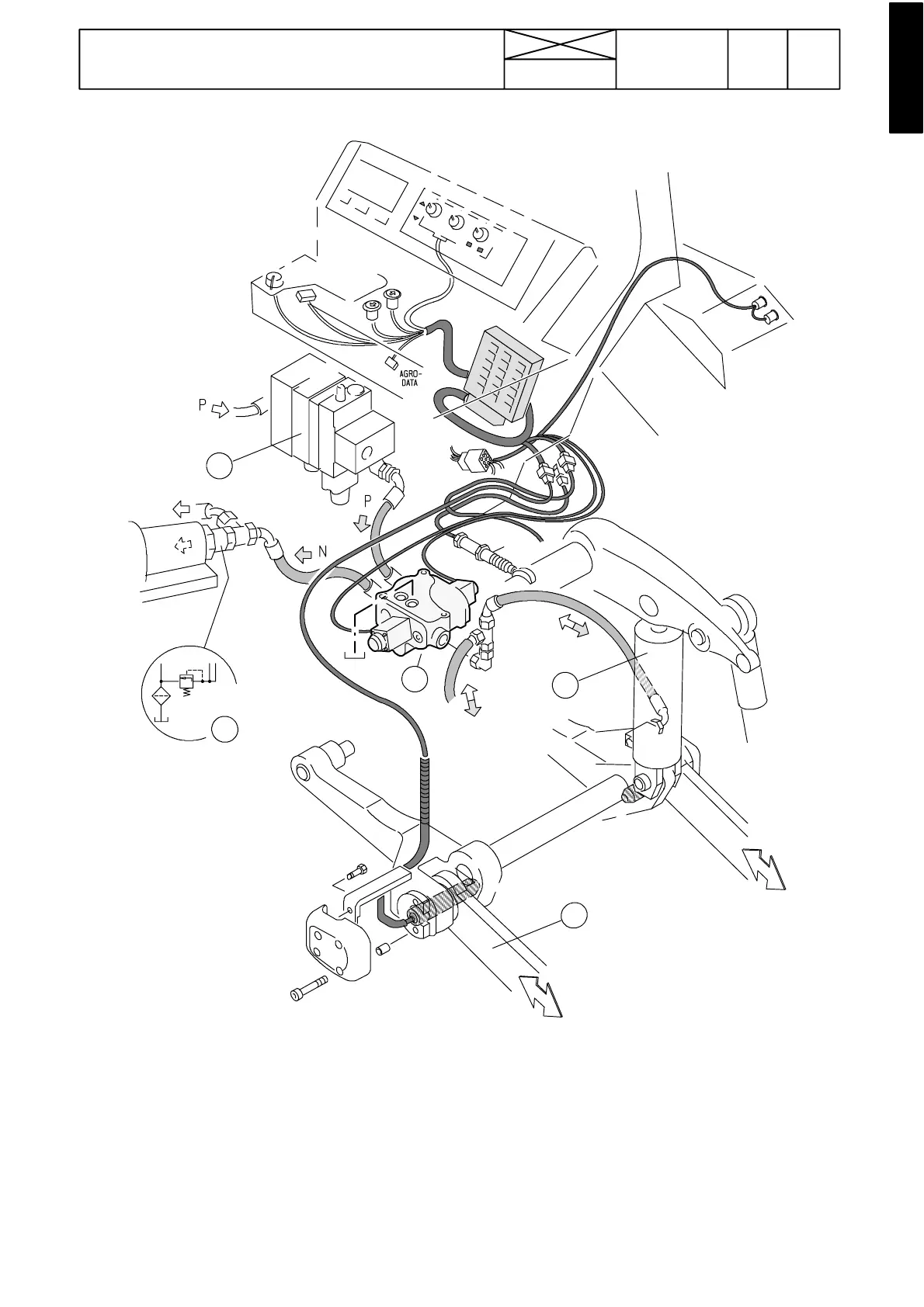 The hydraulic lift control valve (1) is fitted on the RH side of the