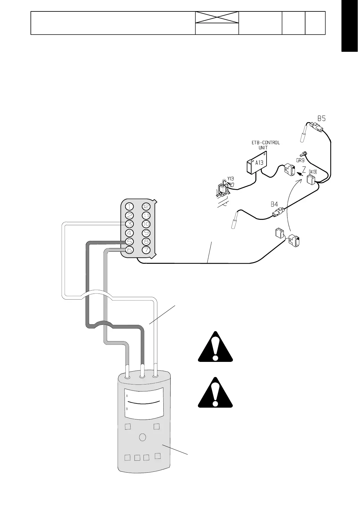 1. Connect the measuring cable ETV 894310 (requires later connectors, G22507--- ) to the connector (A13) of the control unit.