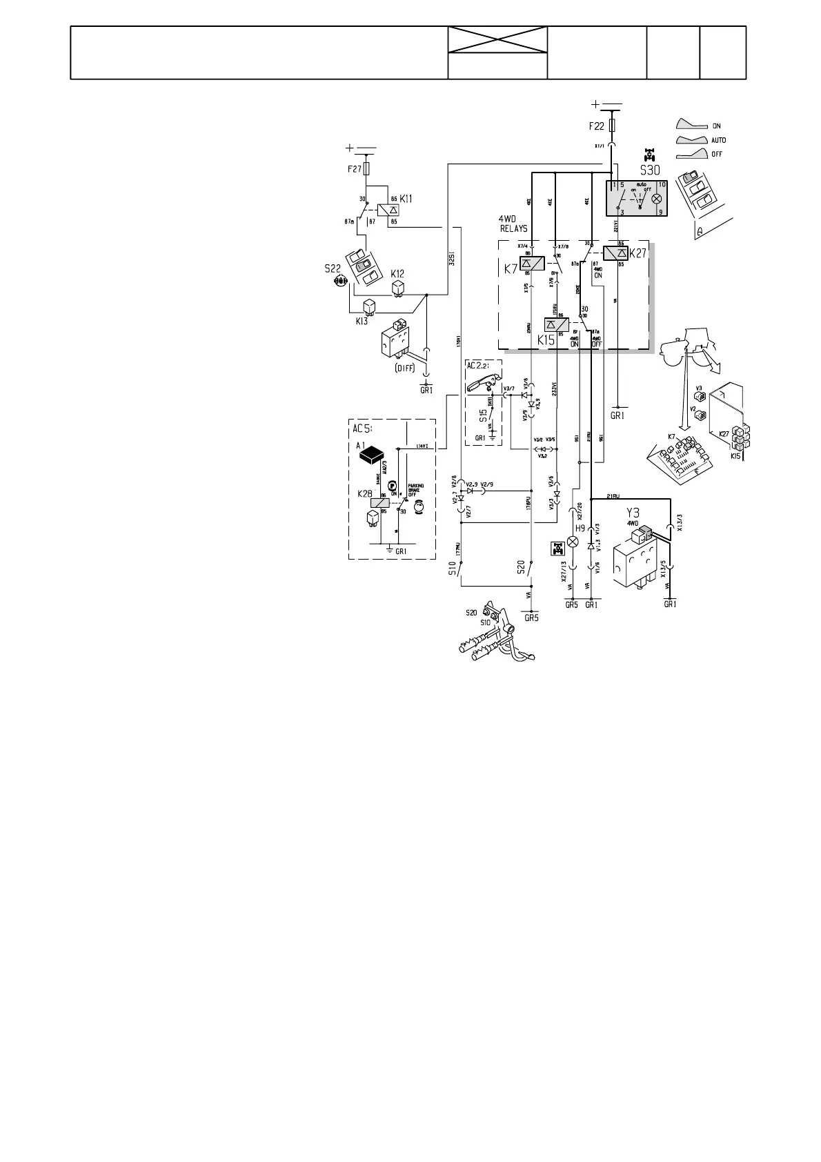 K27: 4WD relay (4WD engages, when the diff. lock is enga-