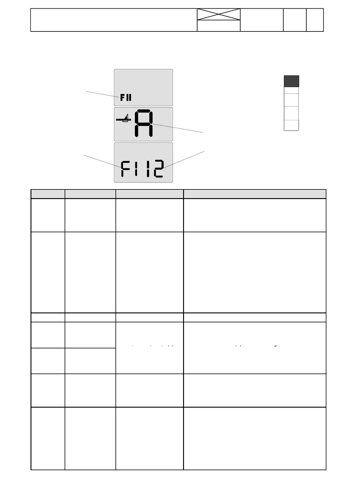 Note! If the display shows e.g. F1 51, it means the engine rpm sensor frequency of 5100 Hz (value x100=Hertz number).