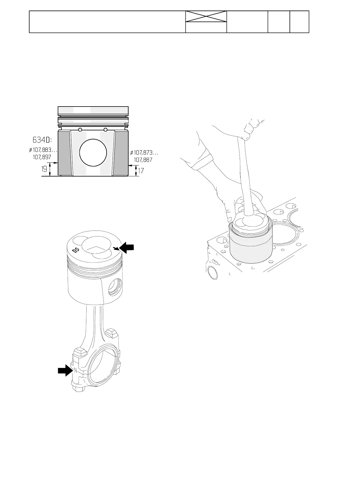 3. Fit the piston with the marking on the connecting rod