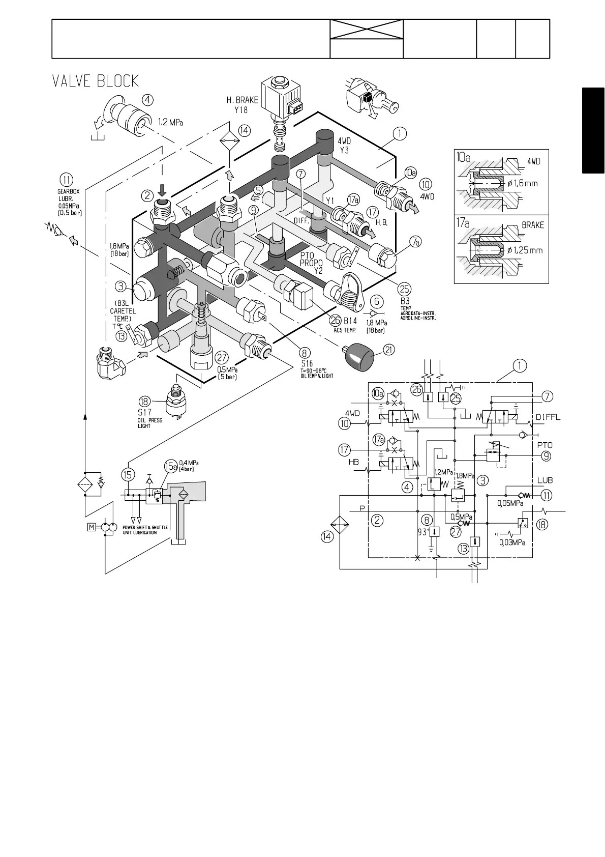 Behind plug 7a there is diff. lock clutch pressure.