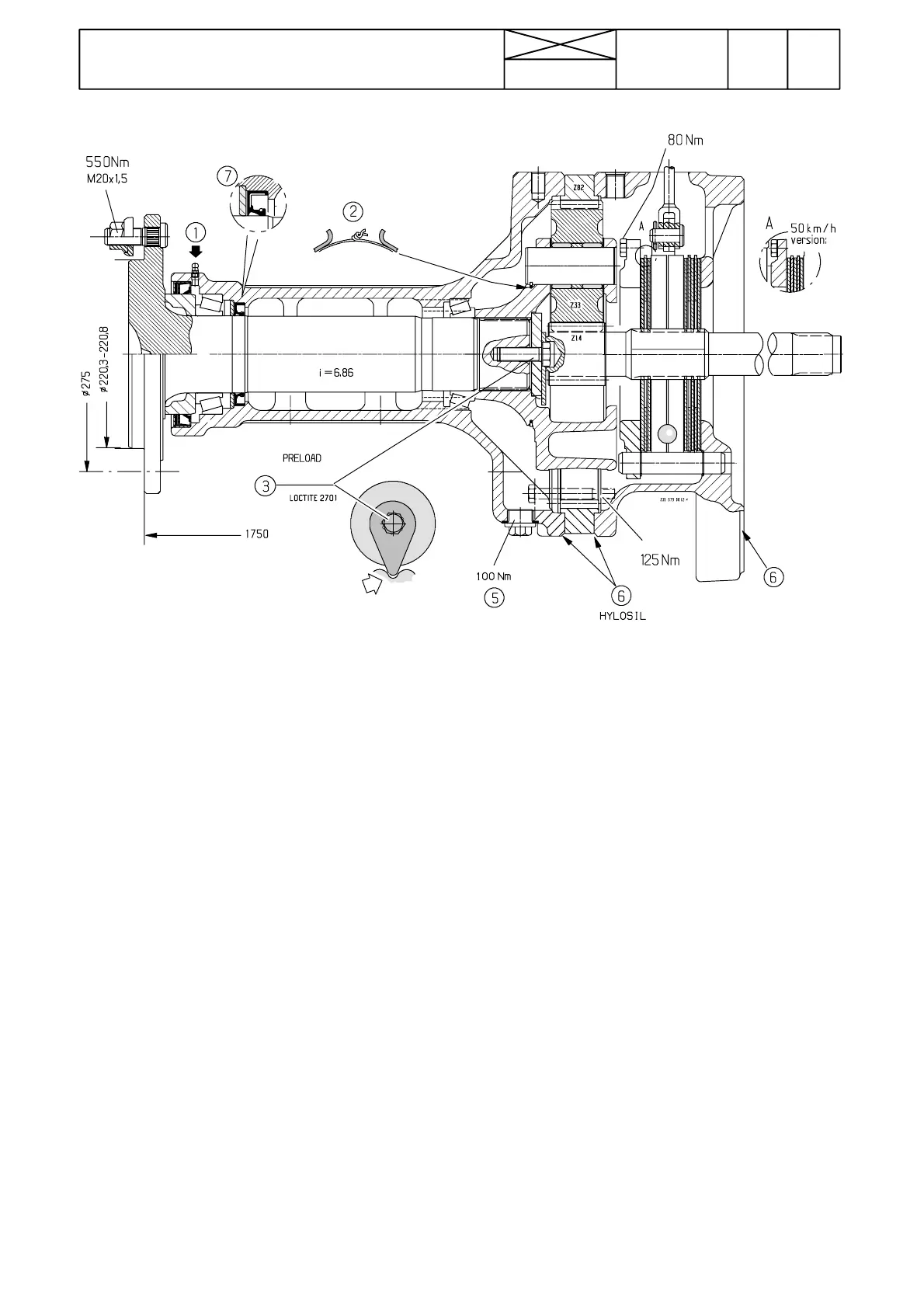 *) In order to increase the oil volume (cooling advantage), the inner seal has been moved outwards. Axle housing, hub shaft and