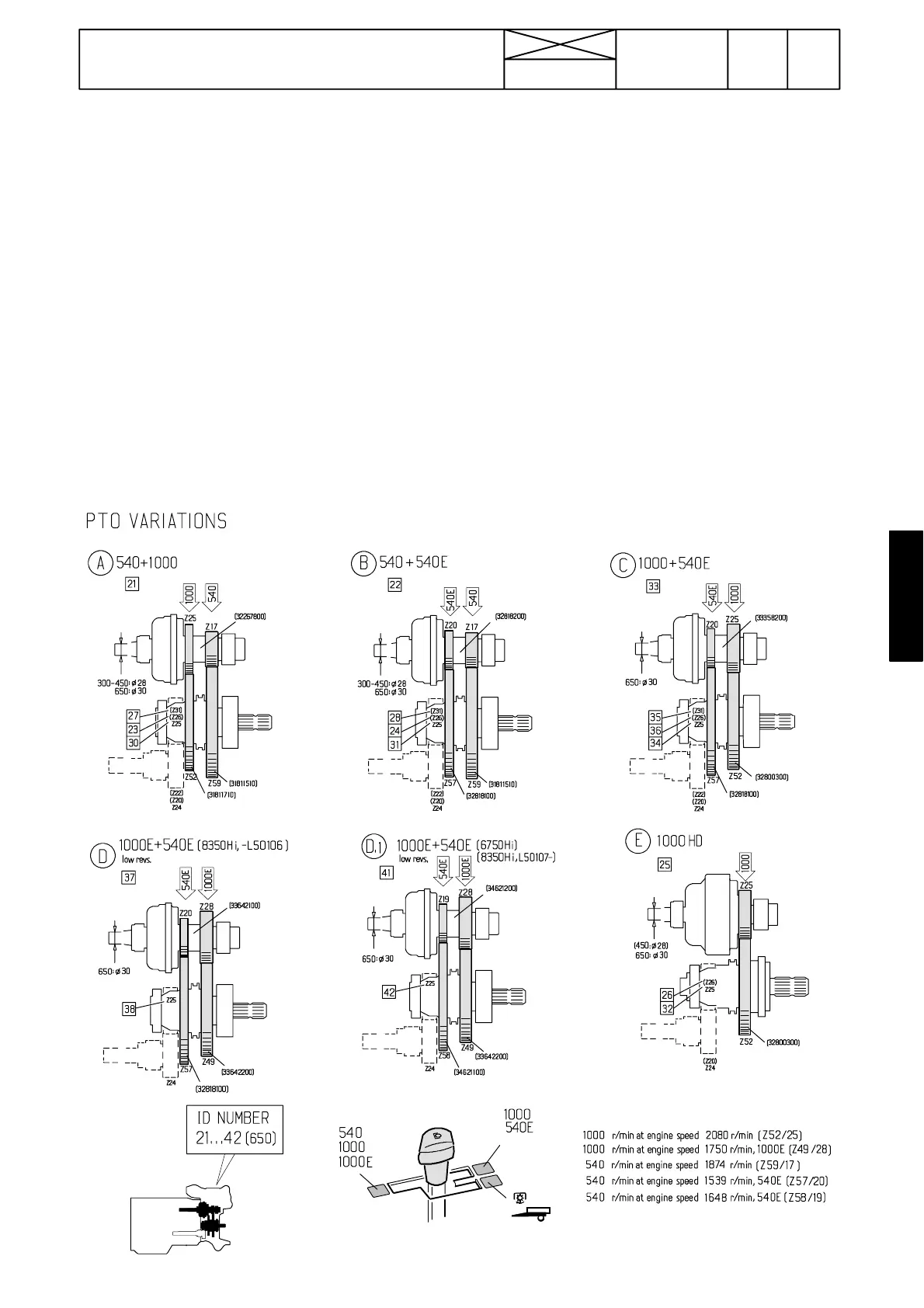 Code Type Z Ground speed PTO ratio