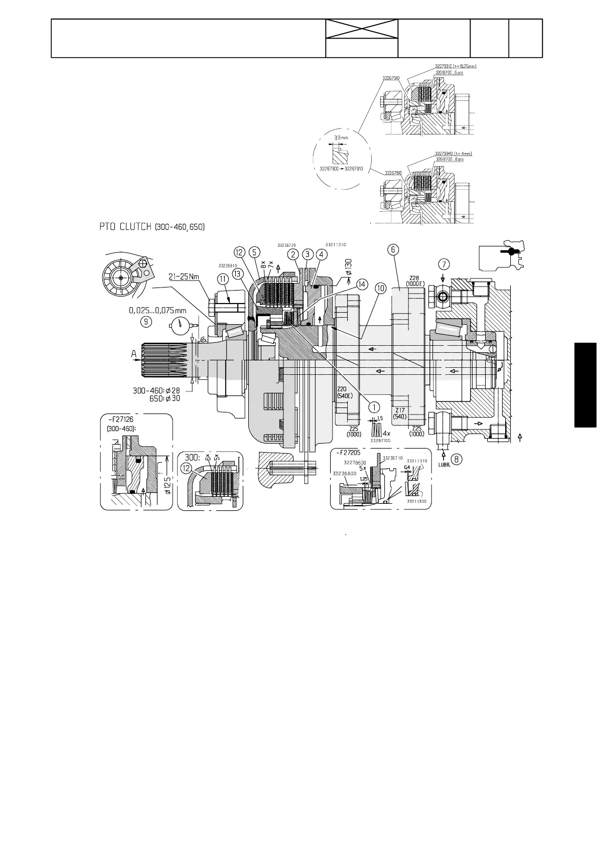 Note! In transmission 650 the clutch drive shaft diameter is 30