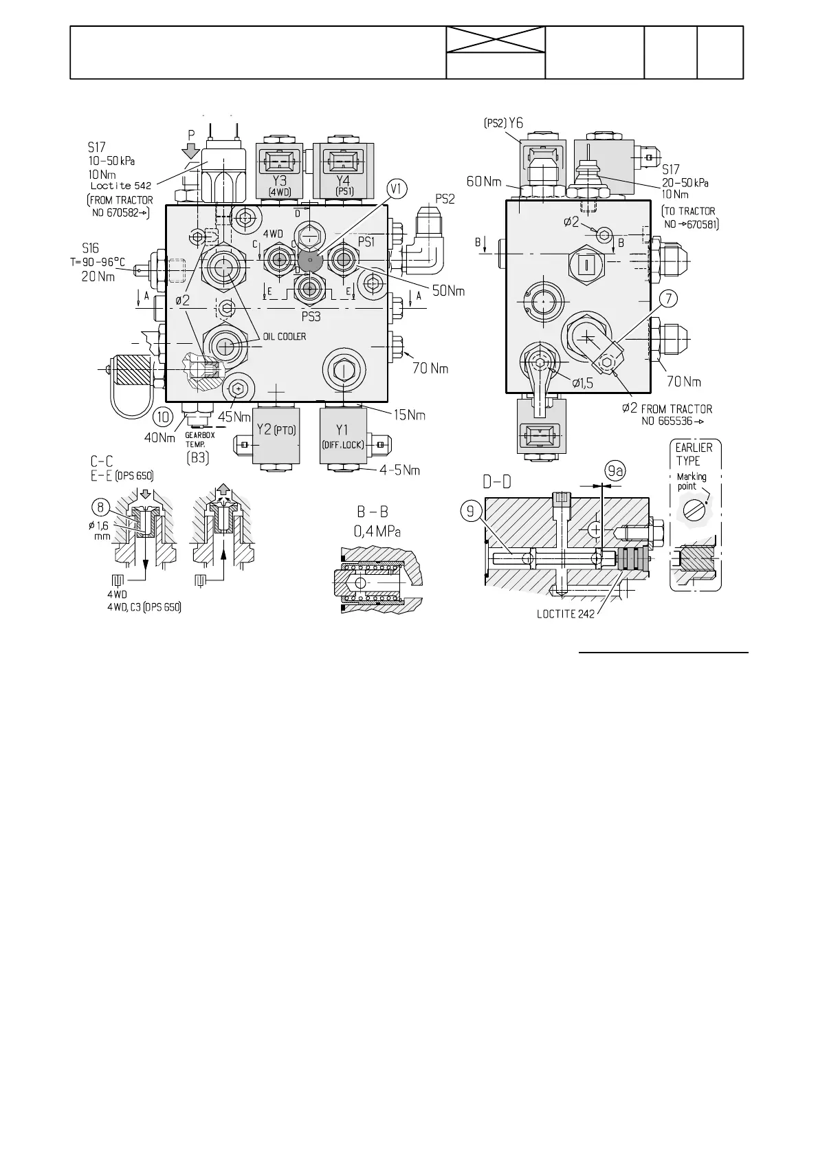 Note! With effect from tractor ser. no. 665536 the valve block
