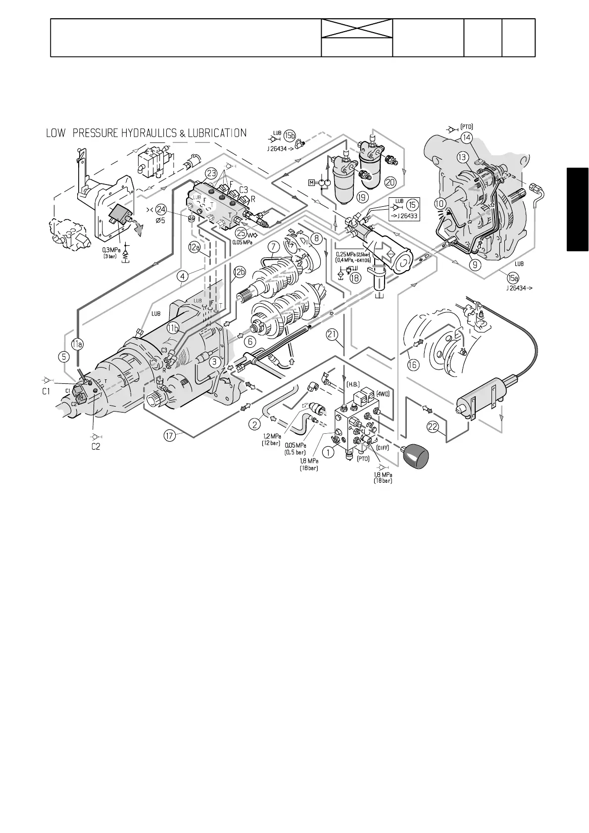 16. Pressure oil to diff. lock