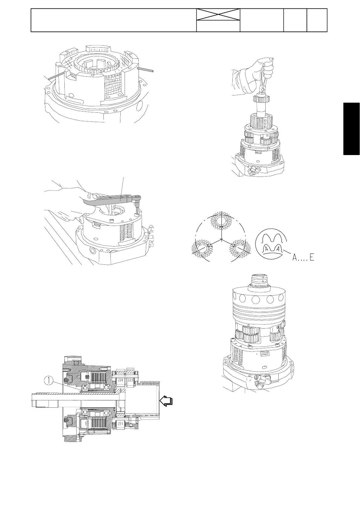 (e.g. A) point towards the centre of the sun gears. Fit then