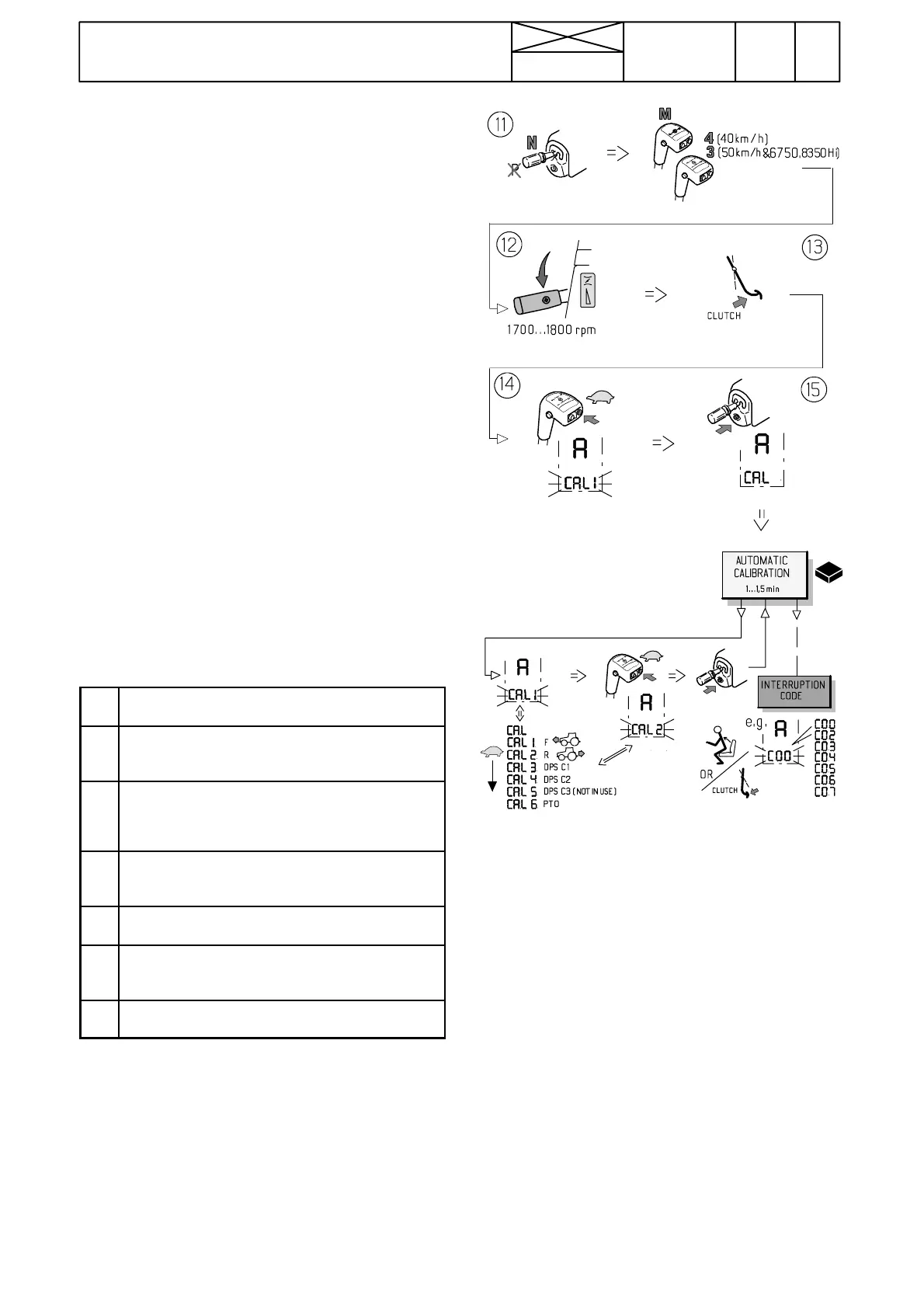 CAL 6 = Calibration of PTO cl utch (Y2).
