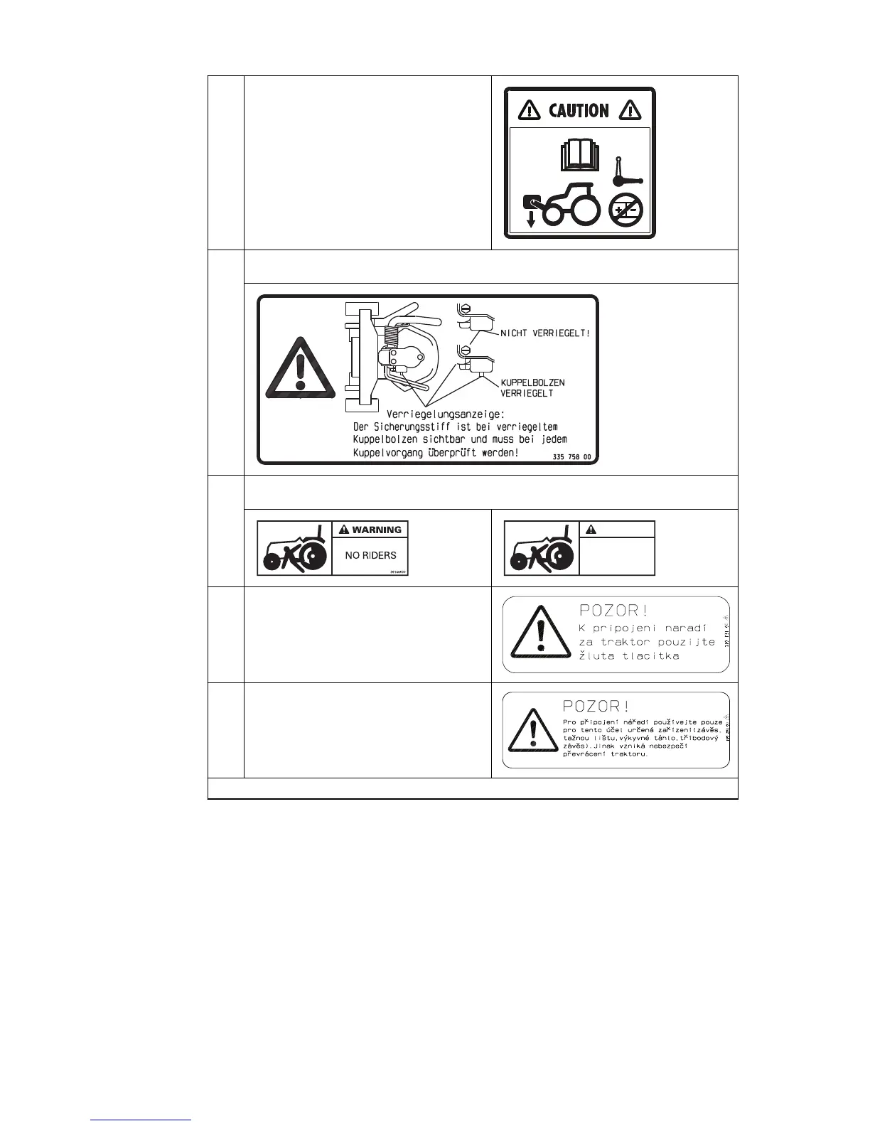 11 Warning: Country-specific warning against standing on the stairs while the tractor is moving. Located
