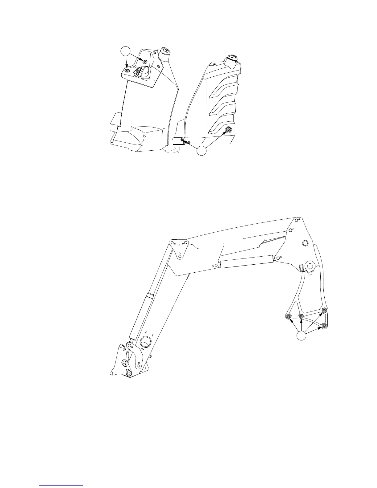 16. Move the AdBlue tank so that you can reach the front loader frame bolts.