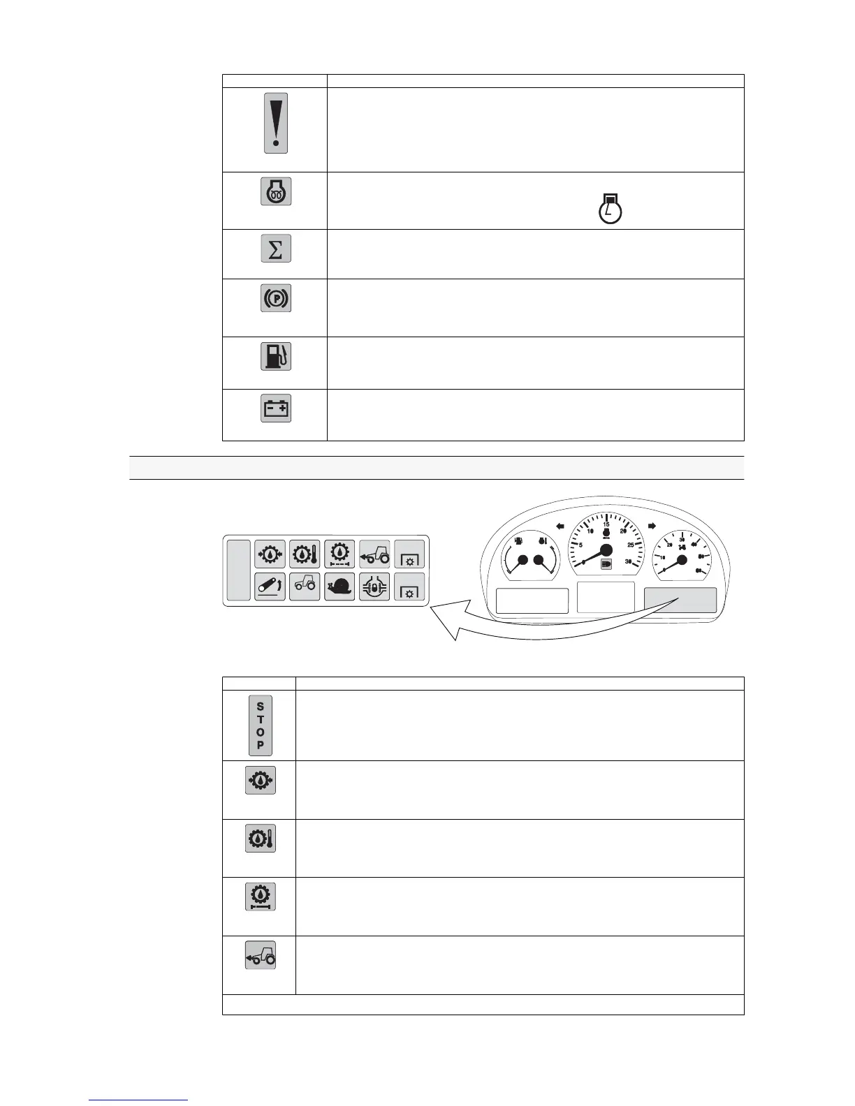 The light is lit continuously (yellow) when the tractor is operating in the higher power