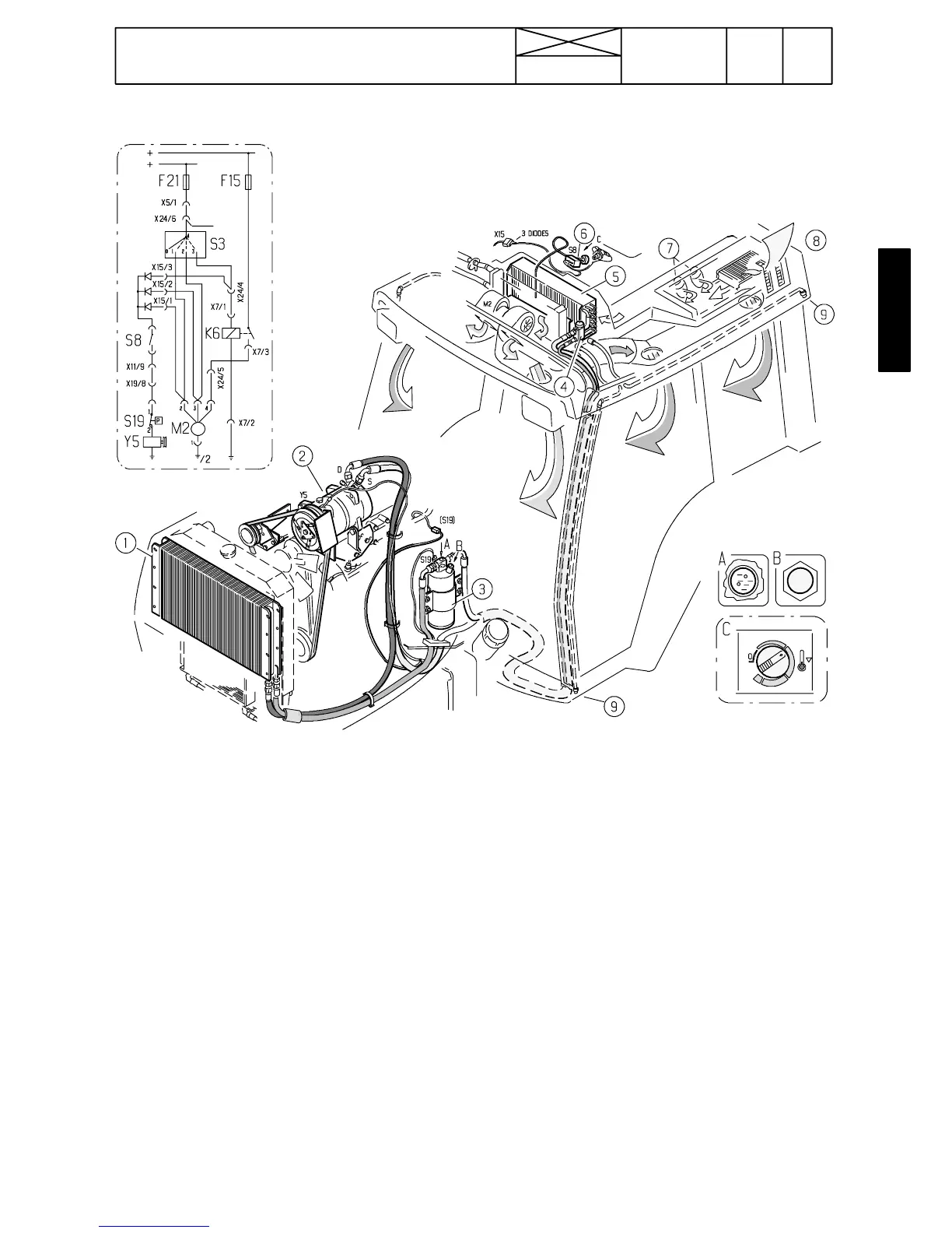 Figure 3. Air conditioner on Valmet 6100---8100 tractors.