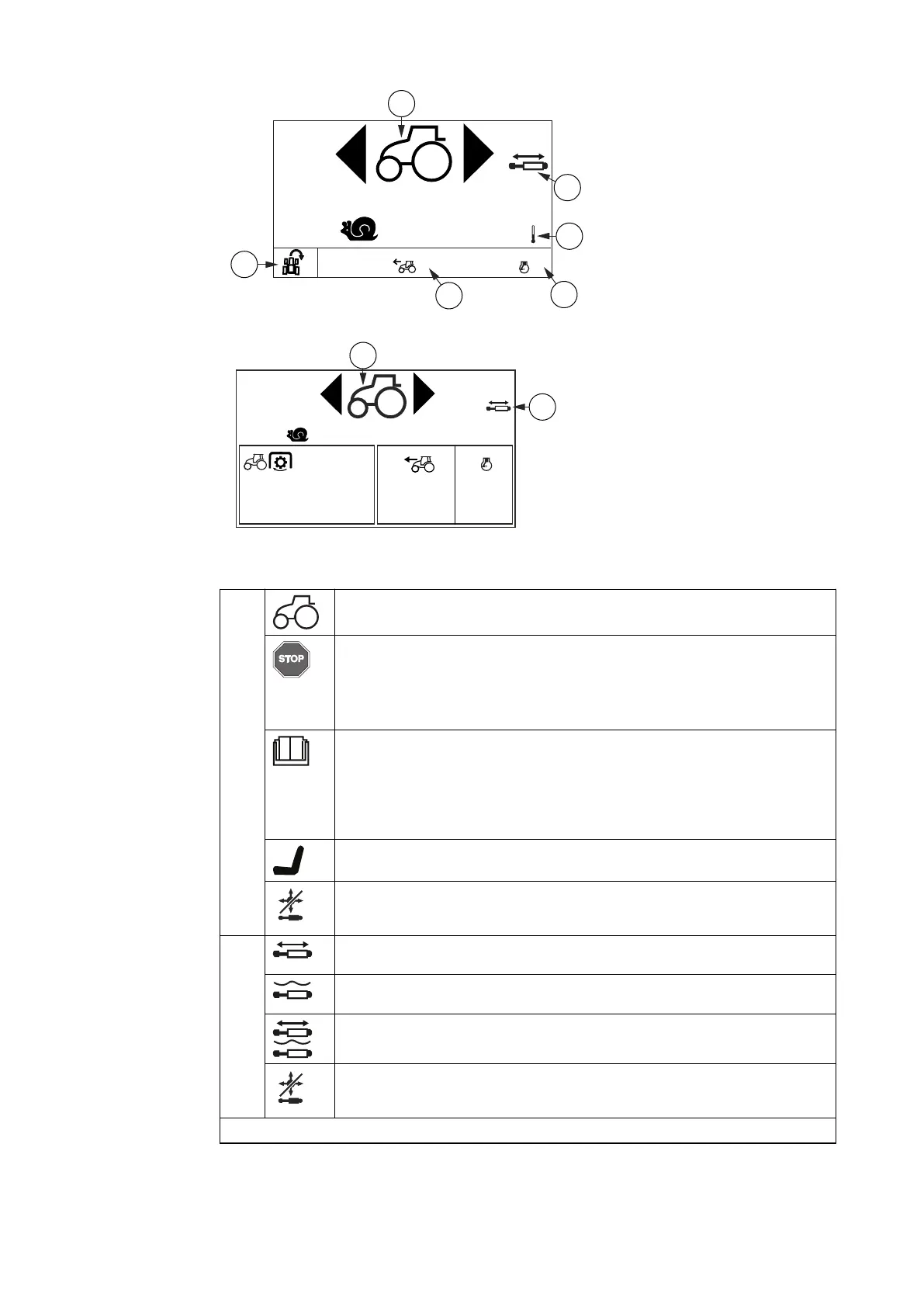 The symbols flash in turns if there is at least one auxiliary hydraulic valve in the floating