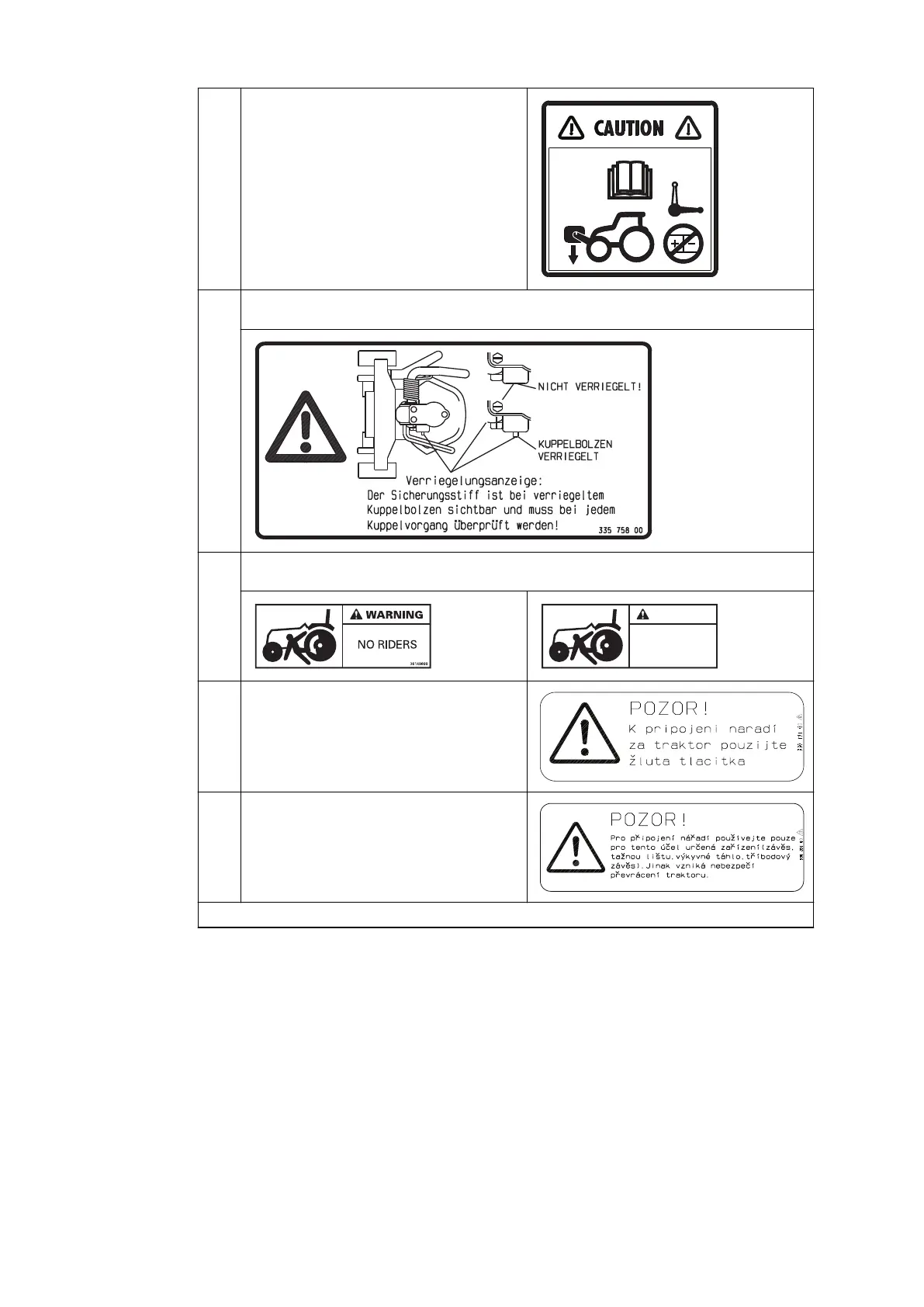 11 Warning: Country-specific warning against standing on the stairs while the tractor is moving. Located