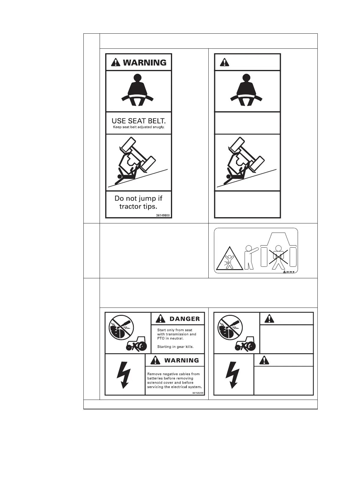 Danger: Starting the tractor is only allowed when sitting in the seat with the transmission and PTO in