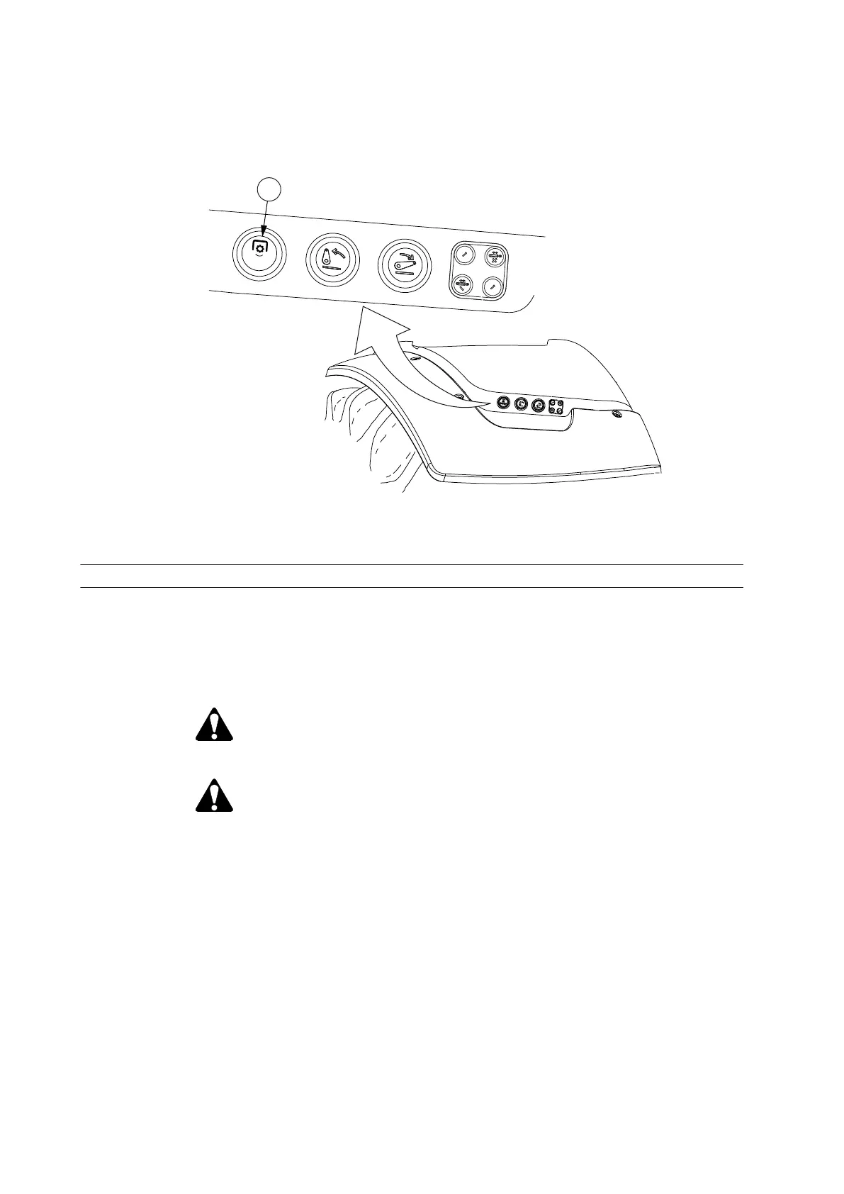 • To start the rear PTO with the rear PTO on/off push button (optional) on the
