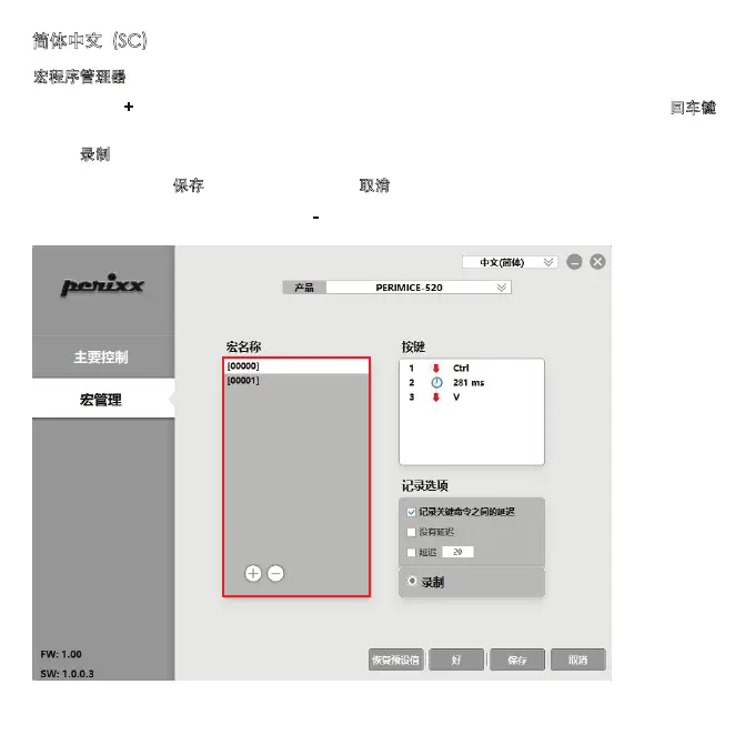 您可以点击 "+" 按钮来创建一个新的宏设置。然后你可以在A位置输入宏的名称,按键盘上的回车键保