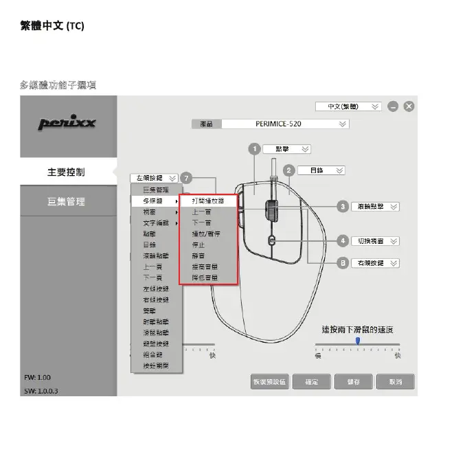 多媒體、Windows及文字編輯功能的子選項中提供您更多設定的選擇。