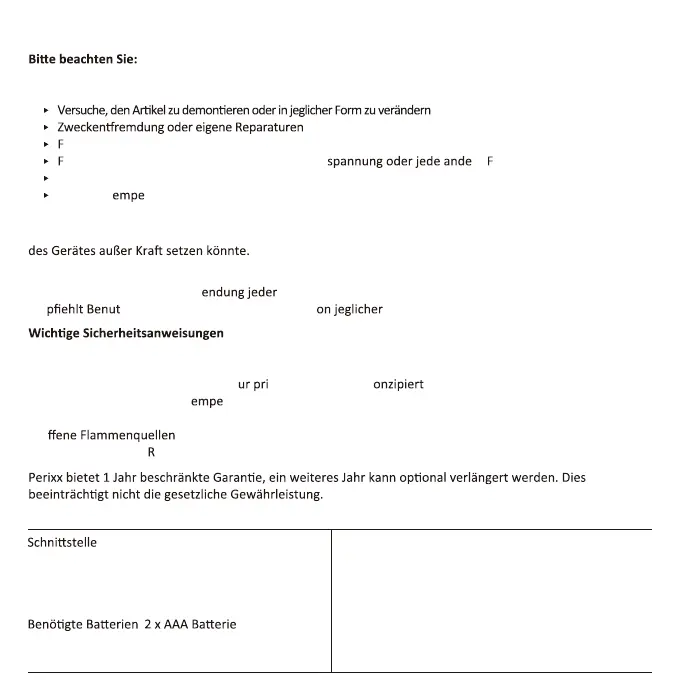 Perixx Computer GmbH nicht ausdrücklich genehmigt sind, die Erlaubnis des Benutzers zur Inbetriebnahme