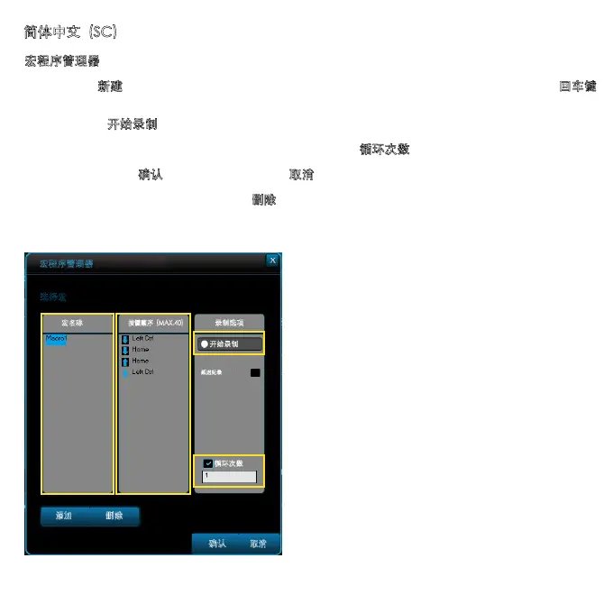 您的按键序列将被记录在中间的C位置处,可通过D位置的“循环次数”设置您需要的循环次数。