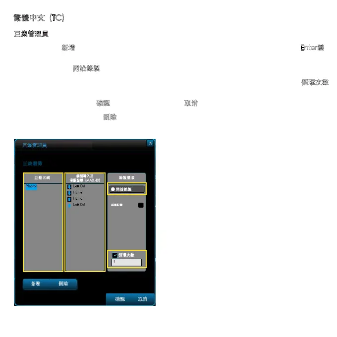 巨集設定完成後,您可以按 [刪除] 來取消設定。
