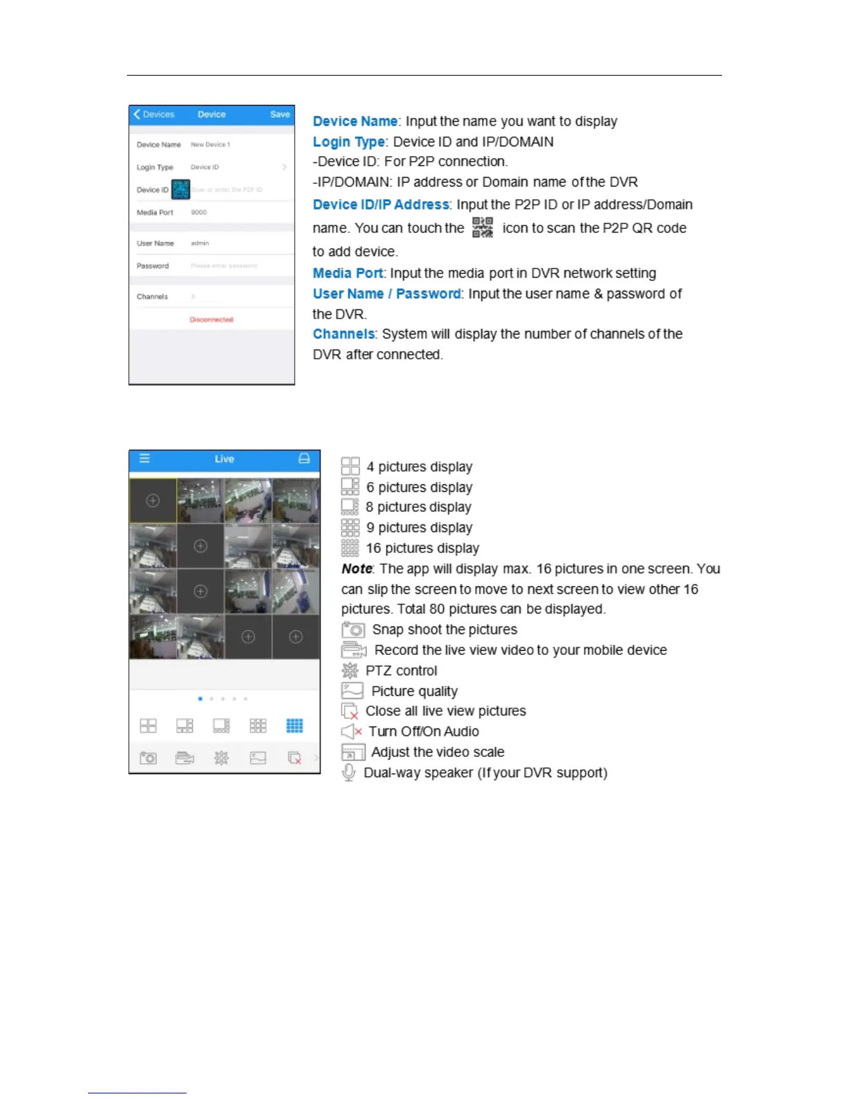 5) After all settings completed, touch Save to save, the app will turn to Live view display if the