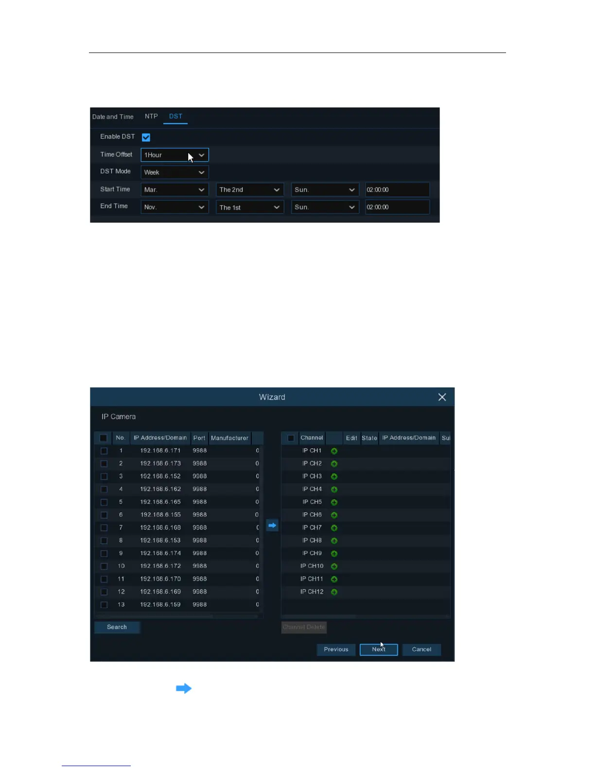 This menu allows you to add IP cameras to the DVR.