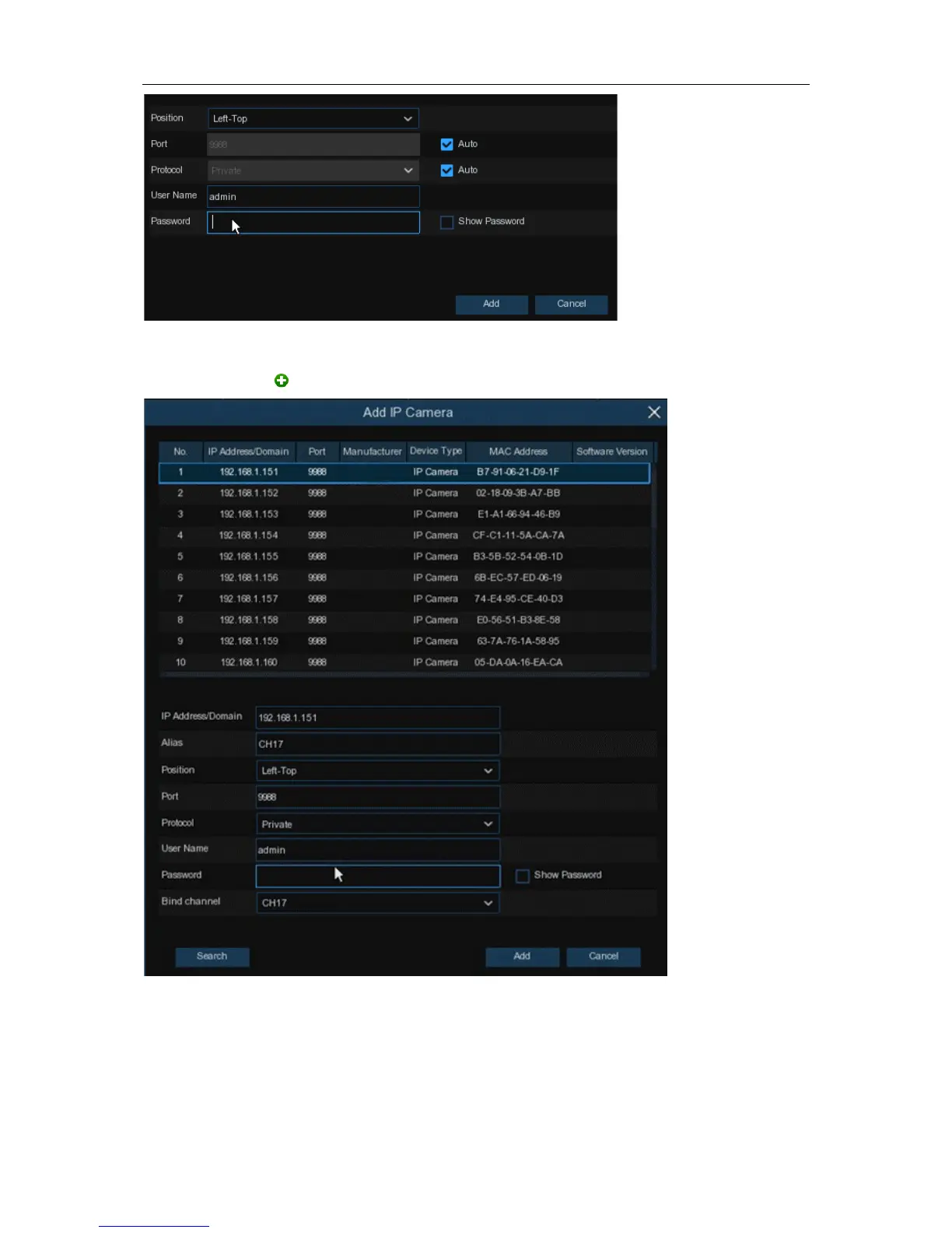 You can also click button to add individual IP camera to a single channel.