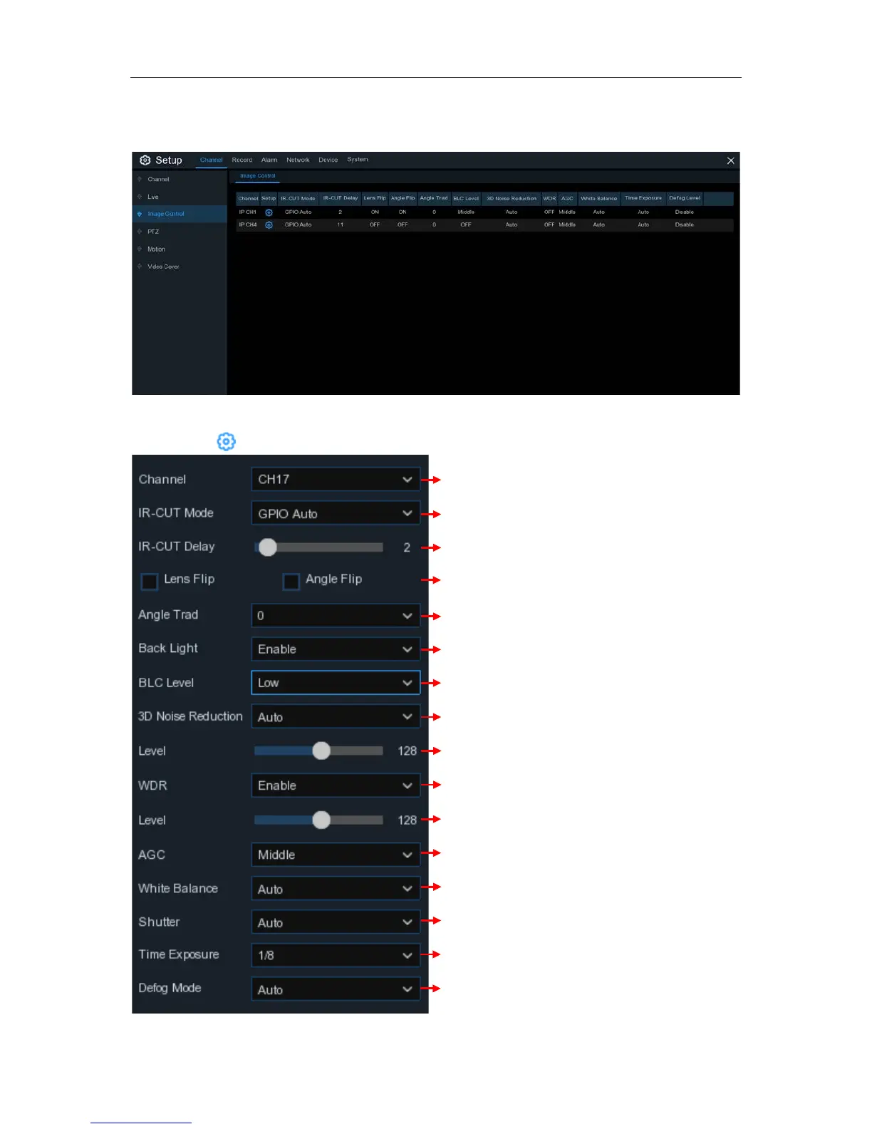 This menu allows you to control image settings for supported IP cameras.