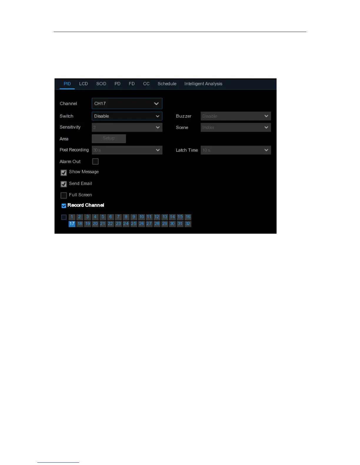 to select the channel(s) you want to record when a detection is triggered.