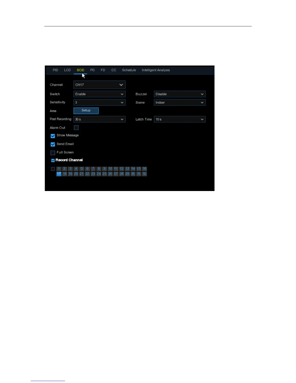 to select the channel(s) you want to record when a detection is triggered.