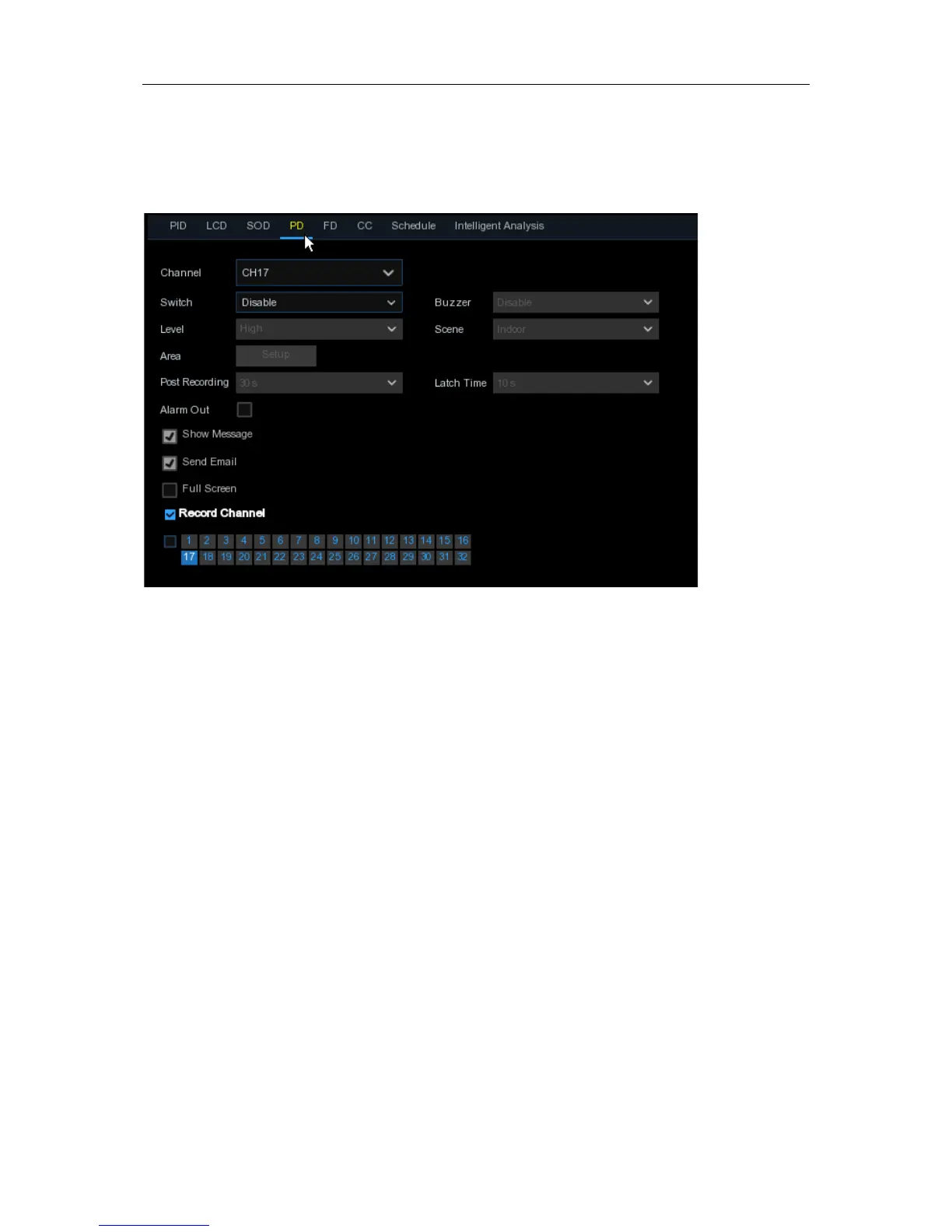 to select the channel(s) you want to record when a detection is triggered.