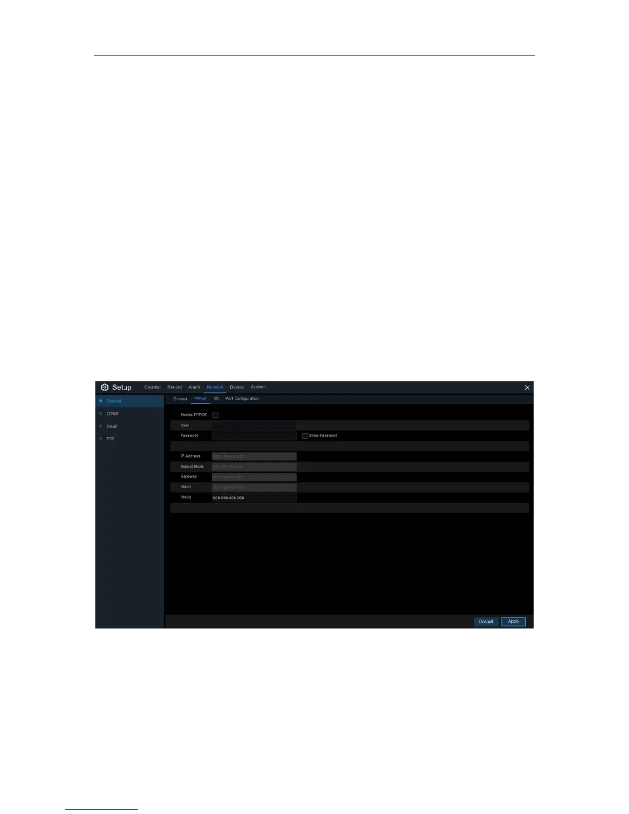 Check the “Enable PPPOE” box, and then enter the User name & Password of the PPPoE.