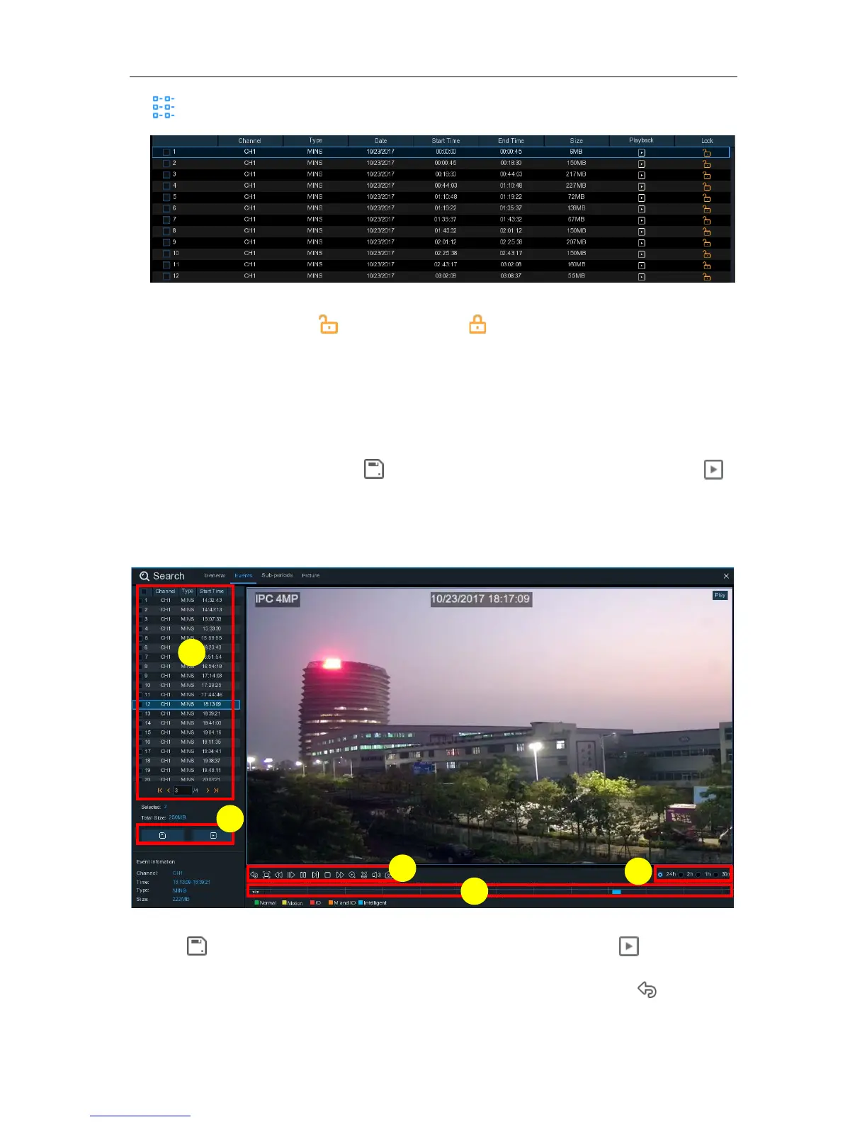 In the detailed view mode, you can lock the video events to keep events from being overwritten