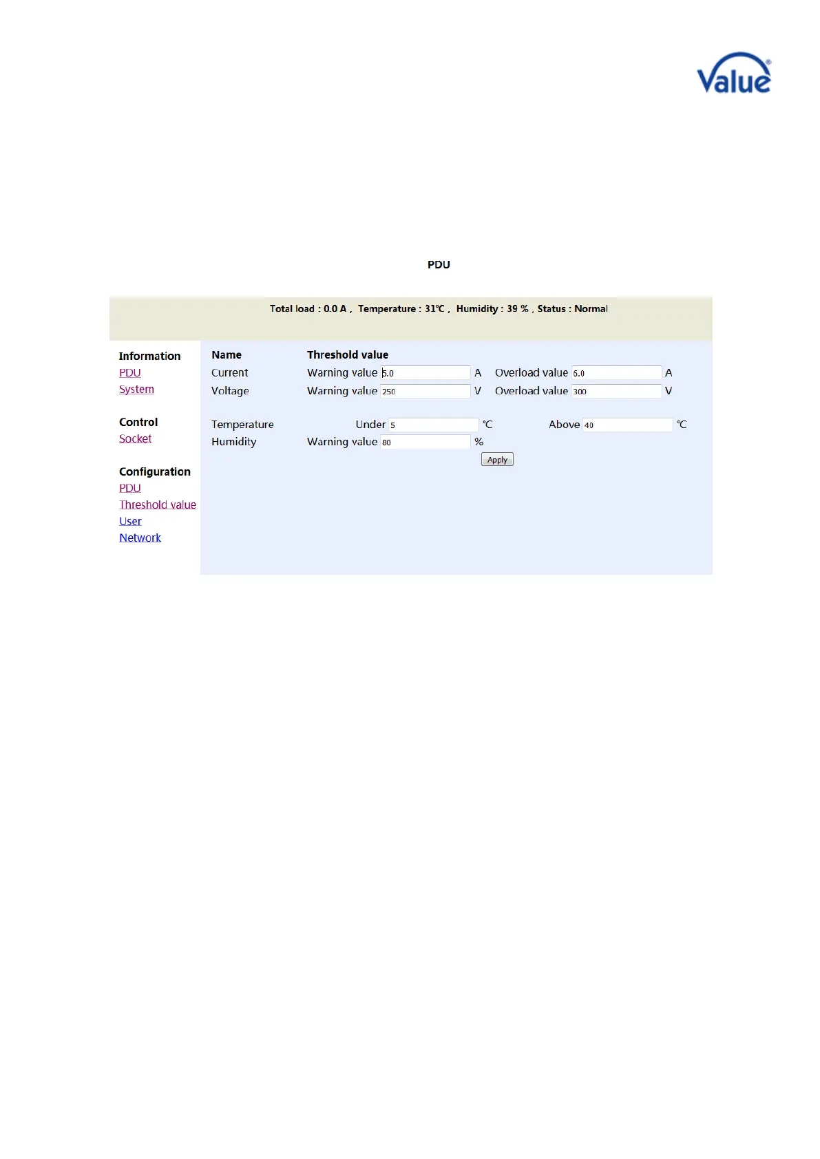 Current – Warning value 5A: Wenn die gesamte Stromstärke 5A überschreitet, sendet der