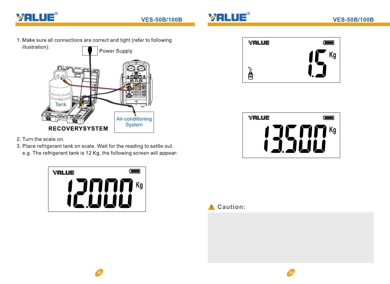 the weight to be recovered, then press “Enter” key. The solenoid valve