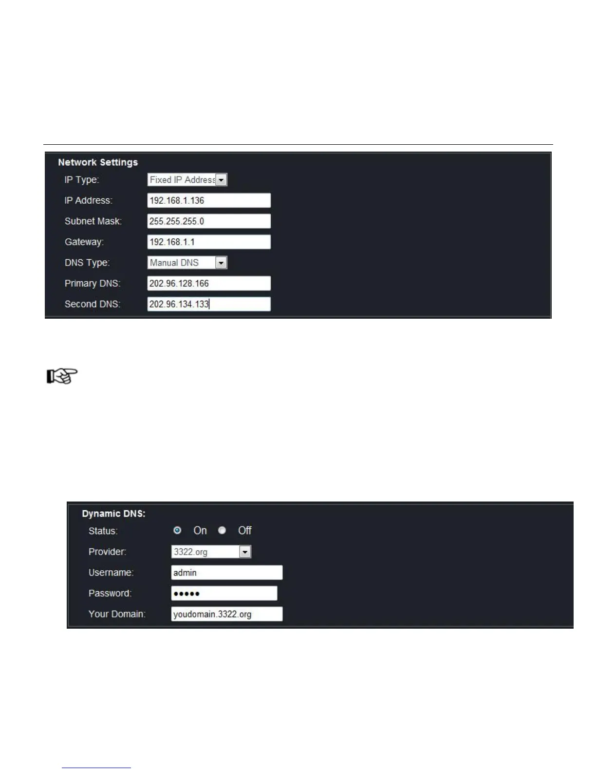 dynamic DNS and select DNS server. Input DNS account, password and domain name, shown as below: