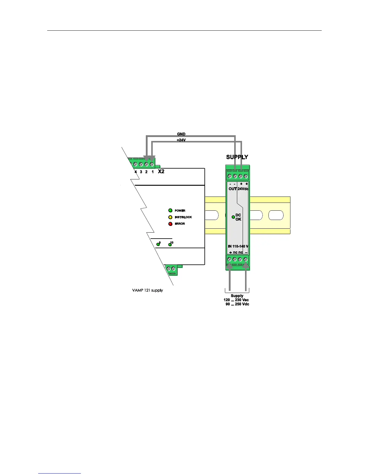 directly connected to the terminals X2-1 (+) and X2-2 (-) on VAMP