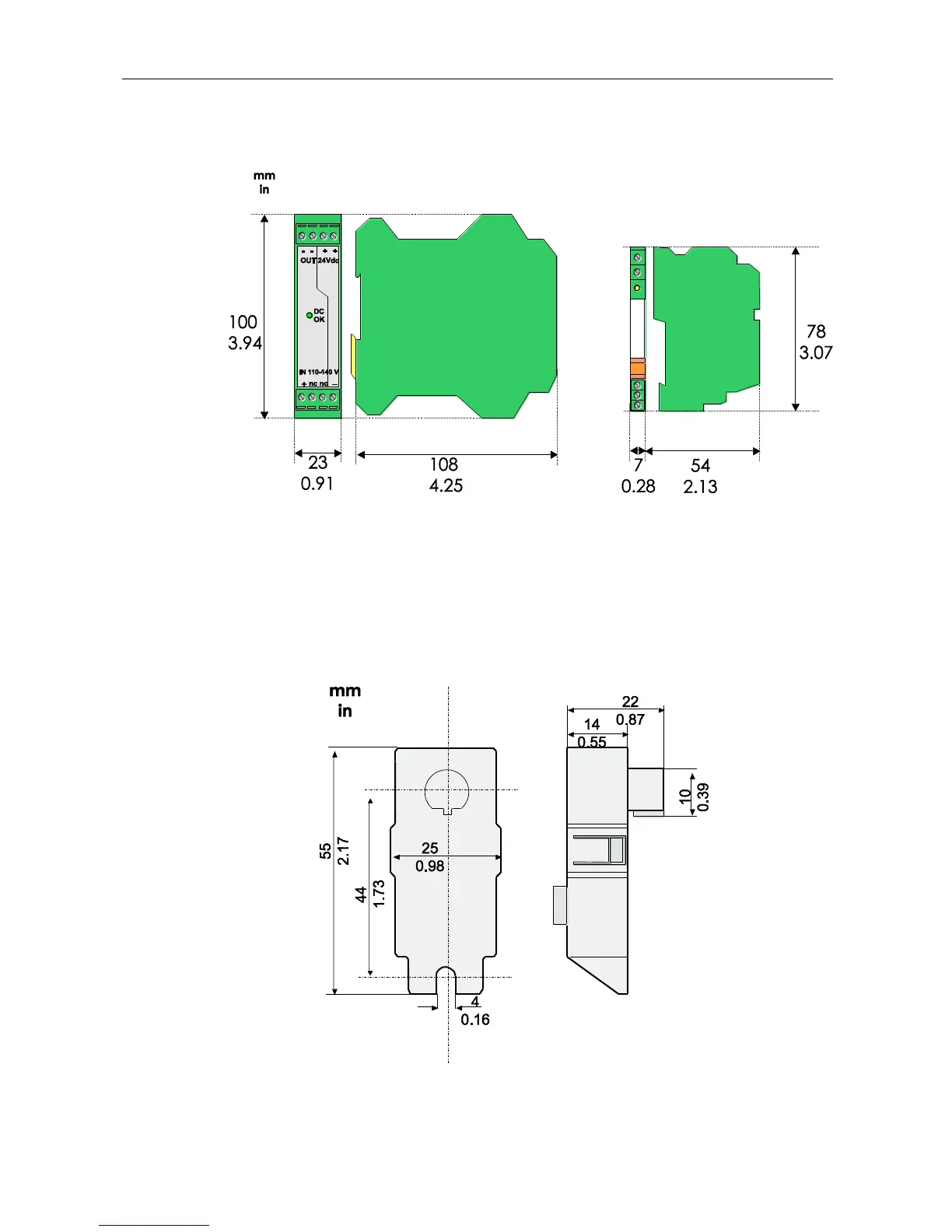Figure 8.3-1 External supply unit and alarm relay dimensions