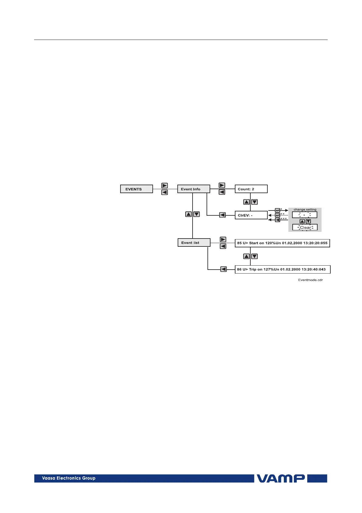 3. Push the DOWN key once, the display shows the ClrEv
