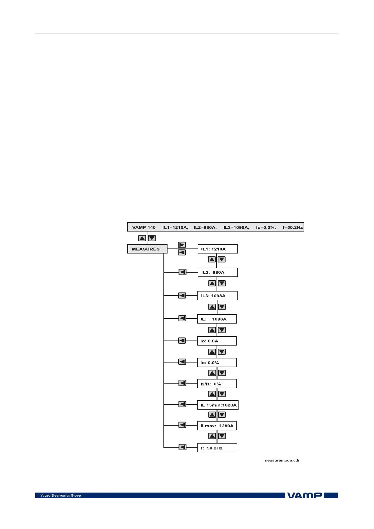 Figure 4.1-1 Measures menu of VAMP 140 relay.