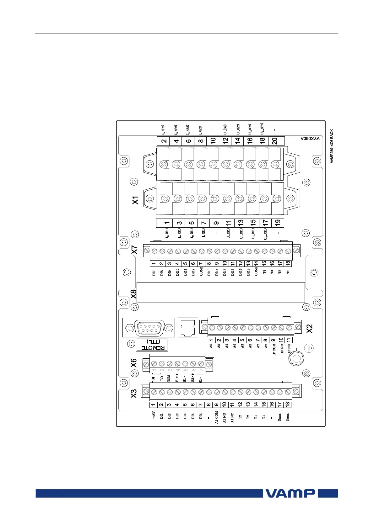 Figure 8.1-1 Connection on the rear panel of the VAMP 259-4C6