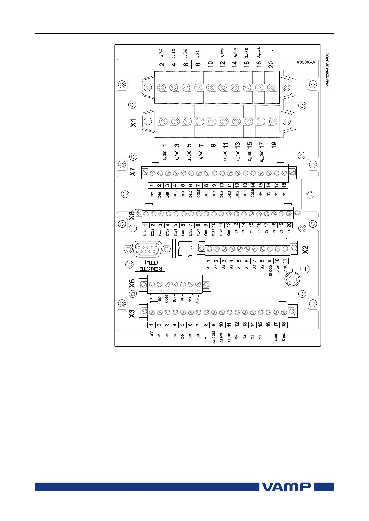 Figure 8.1-2 Connection on the rear panel of the VAMP 259-4C7