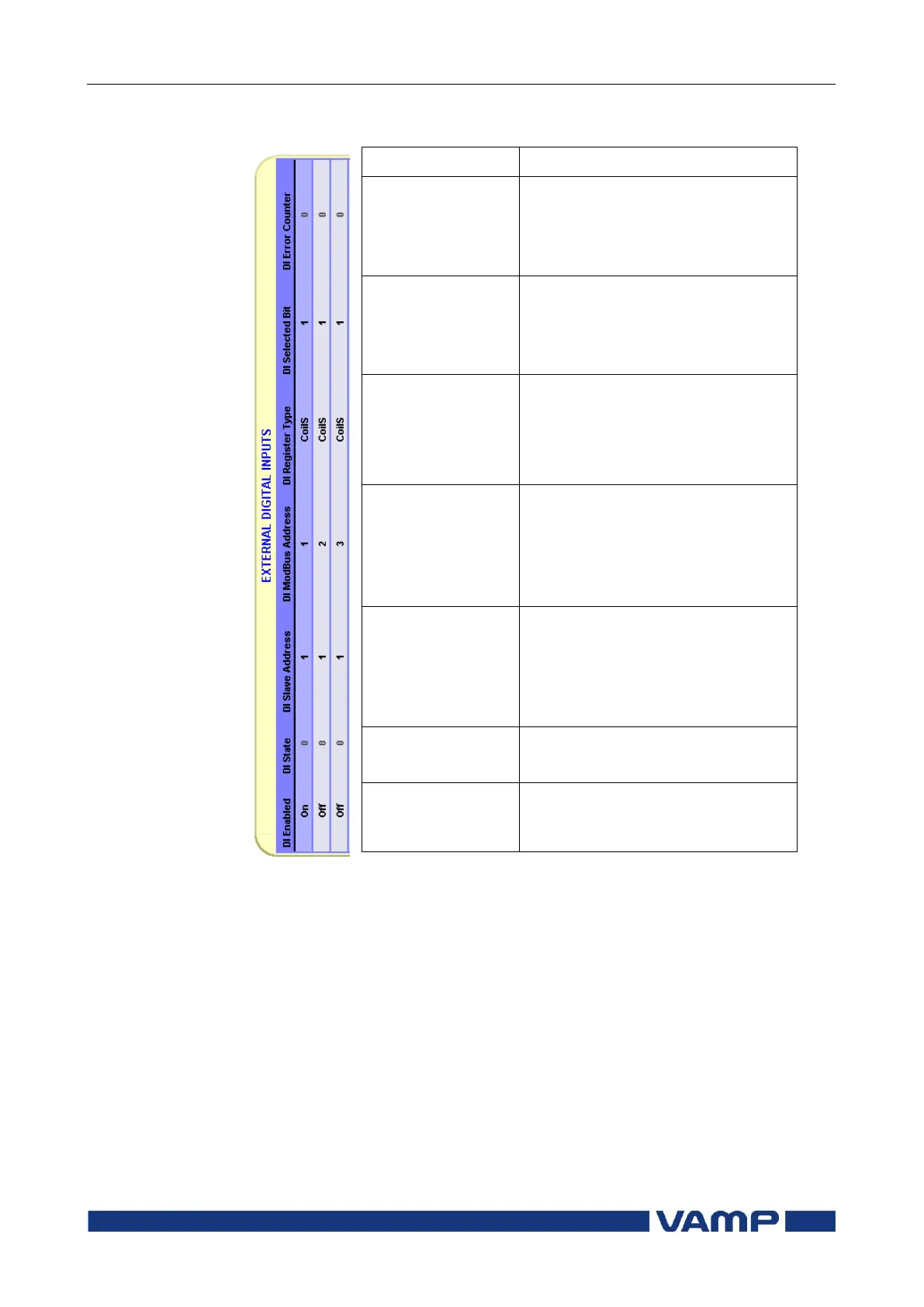 External digital inputs configuration (VAMPSET only)